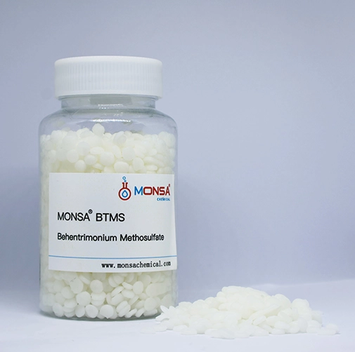 Behentrimonium Methosulfate is a behenyl (C22) cationic quaternary ammonium salt conditioning emulsifier. As a C22 methyl sulfate quaternary ammonium salt, it is more hydrophobic in nature, and it is easier to deposit positive cationic terminals and lipids on the hair, thereby providing better conditioning performance. At the same time, the hydrophobicity and deposition behavior makes the product have excellent dry hair combability. MONSA® BTMS-50 as a basic emulsifier and conditioner has a wide range of applications in hair care and skin care.